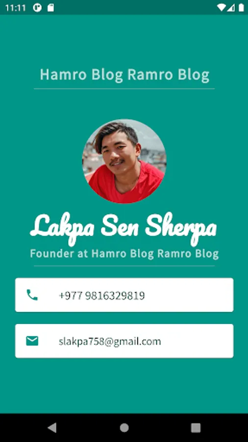 This app contains the personal contact information of Mr Lakpa Sen Sherpa.