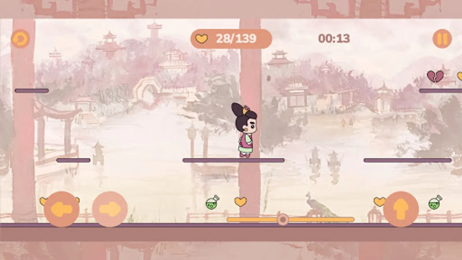 Will you have time to collect all the golden hearts in the allotted time? Help the girl achieve success in the Emperor's palace!