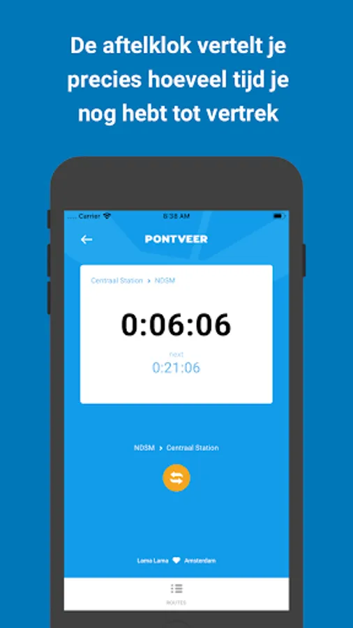 The next two departures for all CFP ferry routes across the IJ in Amsterdam on hand, including countdown!