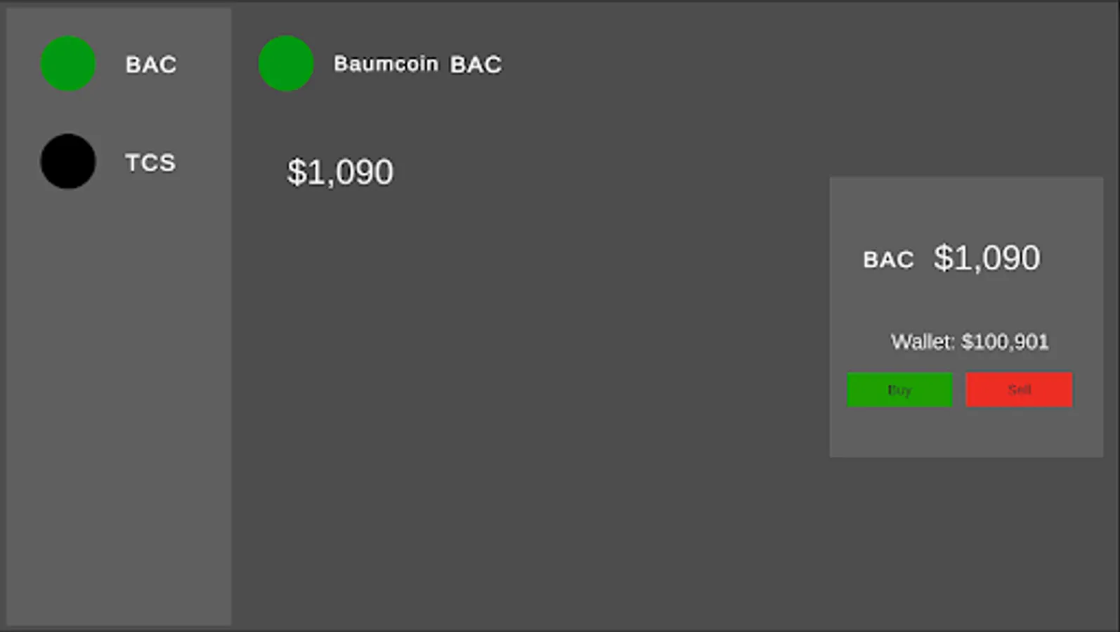 In this game you have the opportunity to buy and sell crypto currencies. You have a wallet with a starting capital of $10,000. Your goal is to trade your crypto coins as well as possible without losing. You can use a graph that shows you how good or bad you buy/sell.
