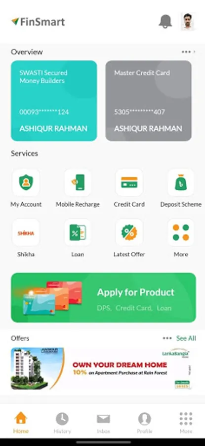 With FinSmart, customers can get the desired service at their fingertips anytime. FinSmart supports both English and Bangla Language, Use Wallet ID and PIN to login. Registration can be done by using the tagged mobile number of your LankaBangla Accounts in the app's 'Sign Up' option. Download from Google Play or the Apple app store only.