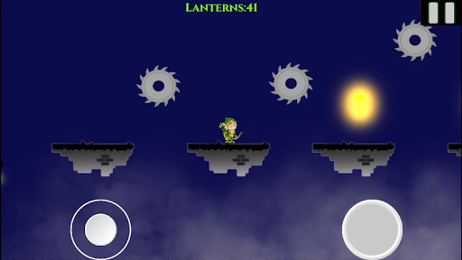 Through Murk is a platform game with simple controls.In the game you control an elf Character called "Miranthil" who moves by jumping across platforms.You can control him by using the Joystick controls to move left or right.You need to avoid the moving spikes,saws,Enemies and the killer spikes below.Your goal is to collect as many lanterns as you can and reach the dark portal.