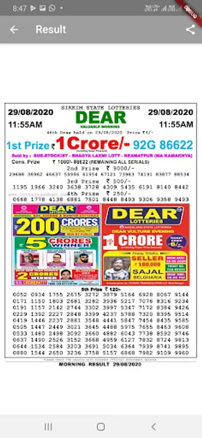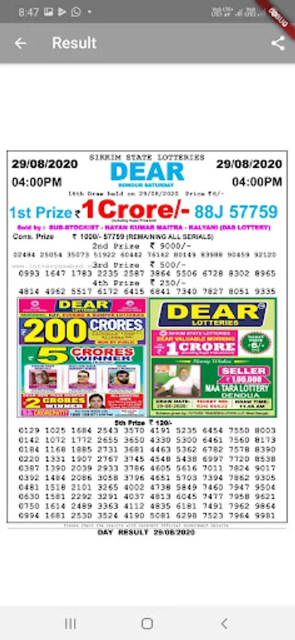 This application is for checking the Sambad Lottery Results Live. We are updating lottery results at the same time of official sites.This application includes a smartest prediction system. We updating the app based on the users requirement. This application updates sikkim , W Bengal and Nagaland Lottery results updated time is 11:55 AM, 4:00 PM and 8:00 PM respectively. We are mainly focus on accurate predictions. We will updating the prediction system continuously for our users to enjoy the accurate prediction.