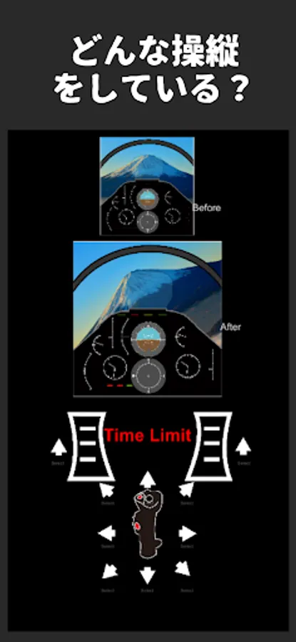 Look at the changes in the scenery from the cockpit, and select the stick (control stick) and rudder operation at that time from 10 options. * The posture of the reference image is random