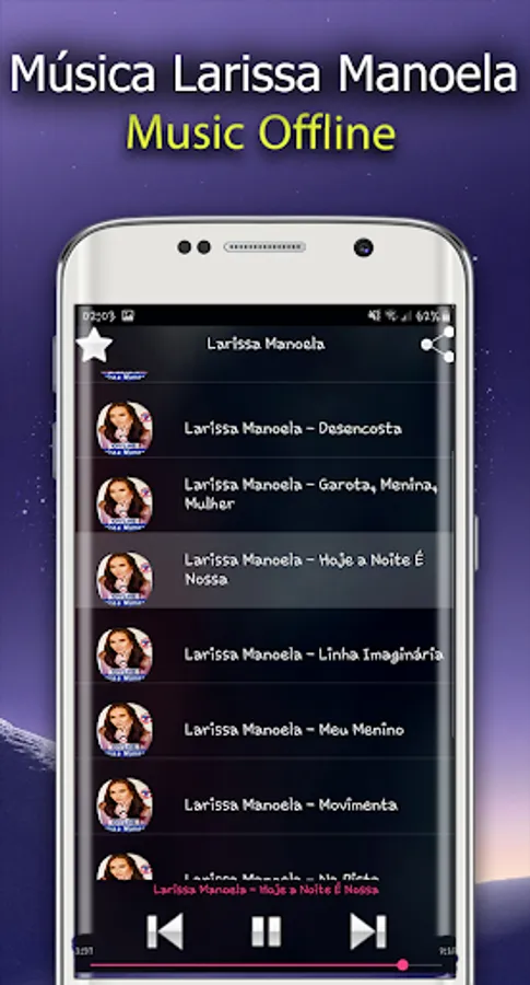 With the Larissa Manoela music app, you can exit the app or lock your phone and music still playing.