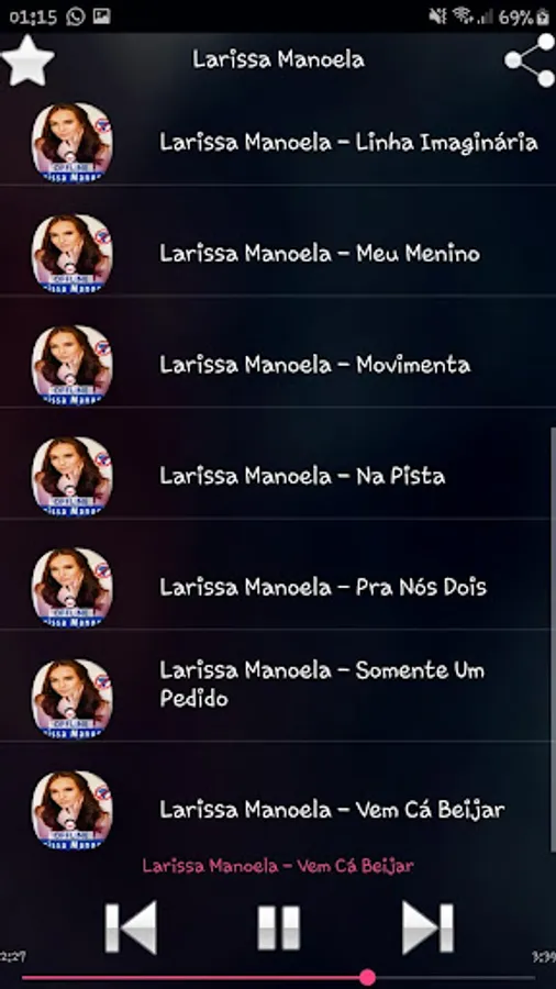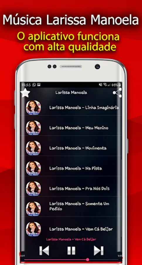 A music app that contains Larissa Monoela songs, you can listen and enjoy easily in this application.