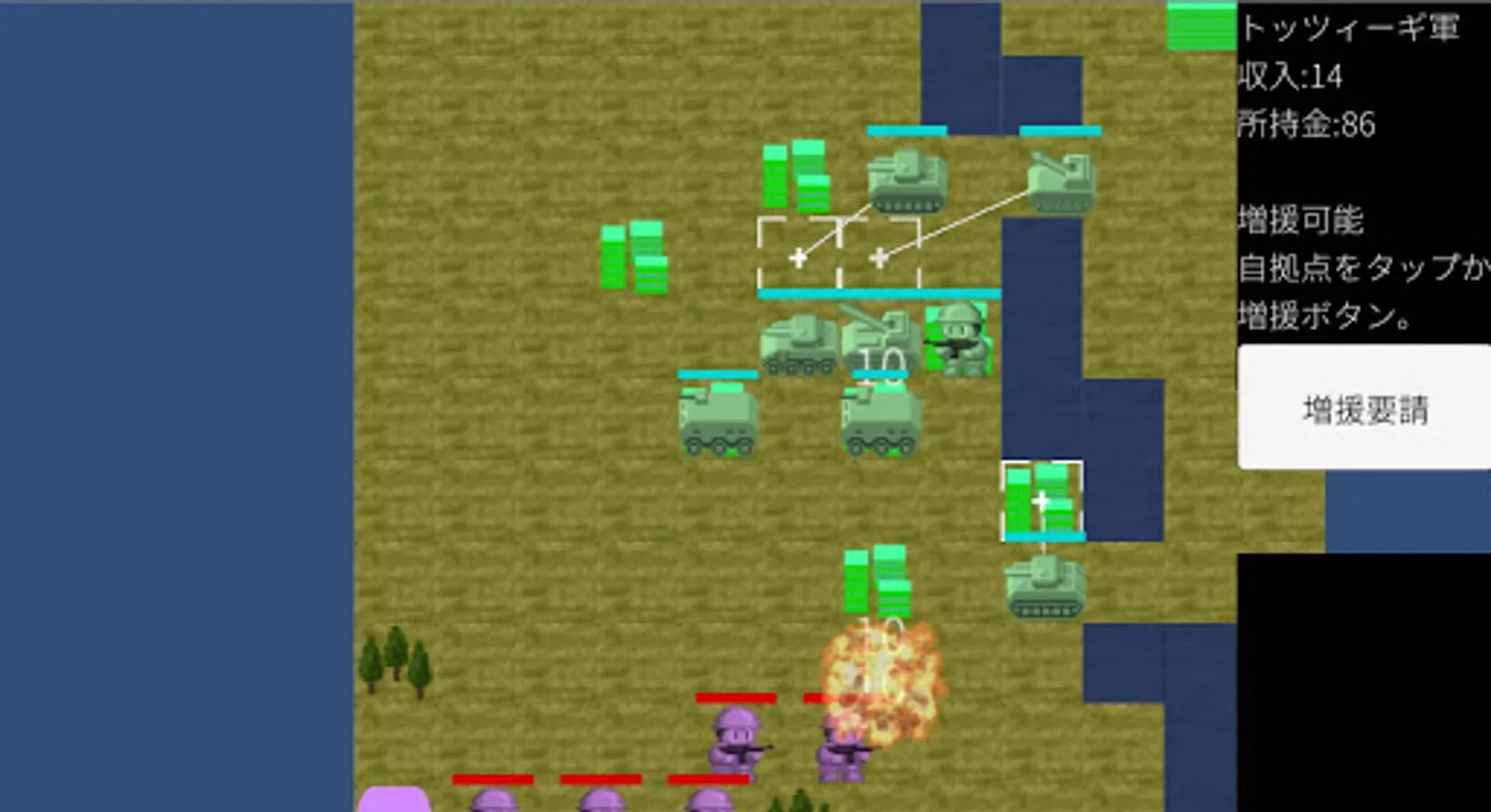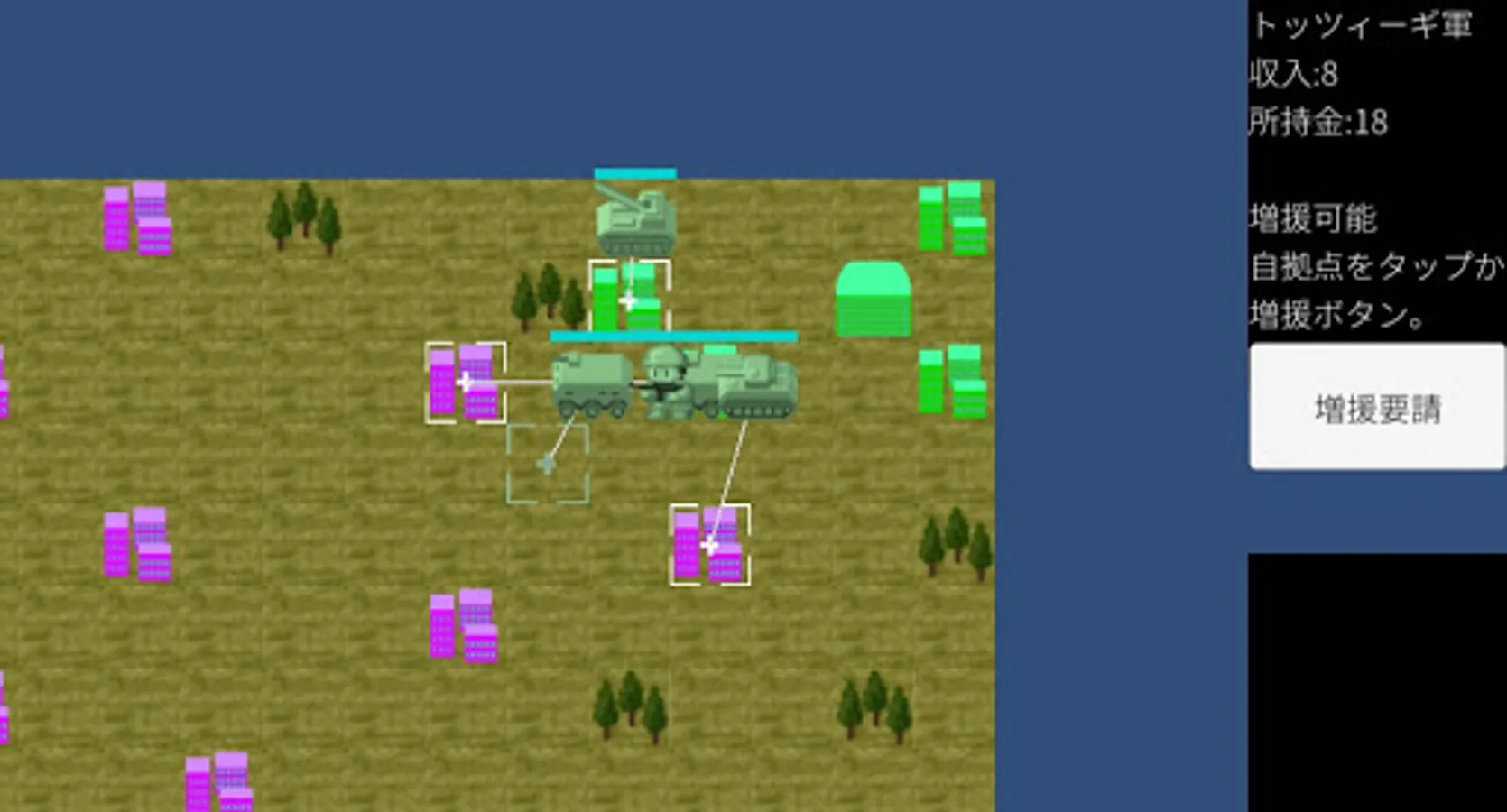 Use 6 heroes and various weapons to protect Tozzigi from the Gunma Empire.