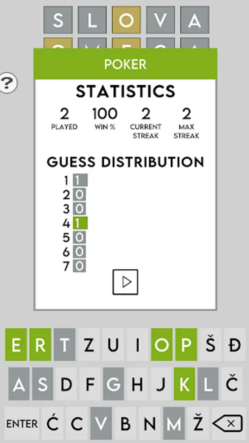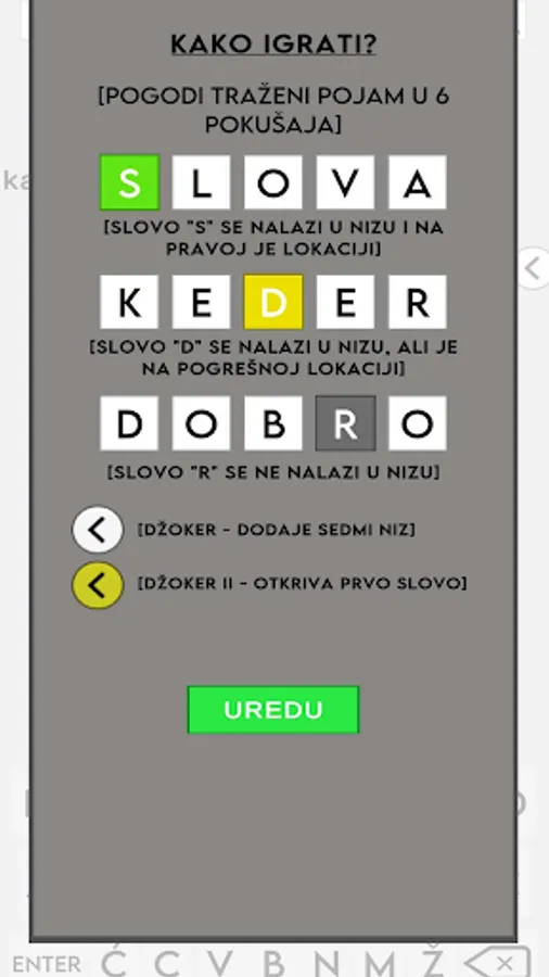 Wordle Clone in Serbian, Croatian, Bosnian, Montenegrin. No limit to one term per day. With wildcards unlocking an extra string or revealing the first letter.