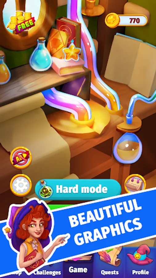 This immersive pipe game moves you to medieval times. The times when wizards were mixing their magic potions and they were trying to unscramble the most difficult mystery puzzles. You can become such a pipe wizard. You just have to tap the elements and rotate them in such a way that you connect pipes and design the pipeline with a magic potion inside.