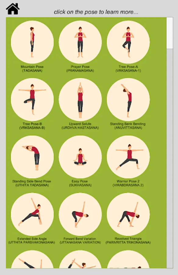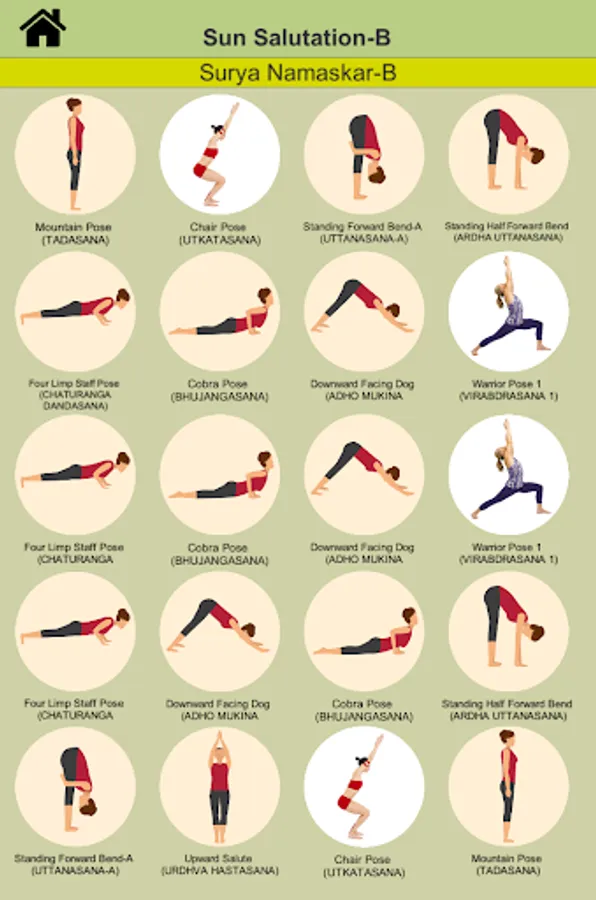 - Pose (asana) names of 120 poses in Sanskrit and English,