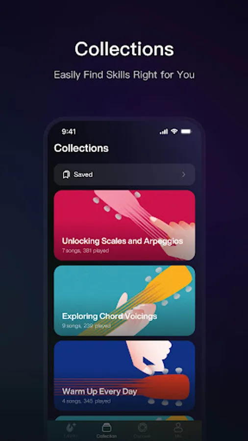 - Explore new ideas to learn with skills of all levels and styles. Save your favorites to Collection and access them on the guitar anytime you want to play.