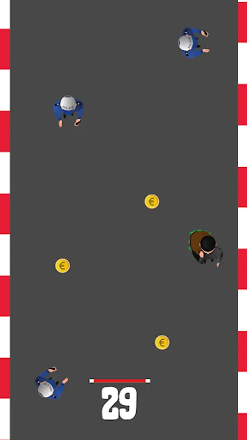 You have to collect all the coins without getting caught by the officers. But be careful with the time for that. It's very easy after that. It is your turn. Let's get started!