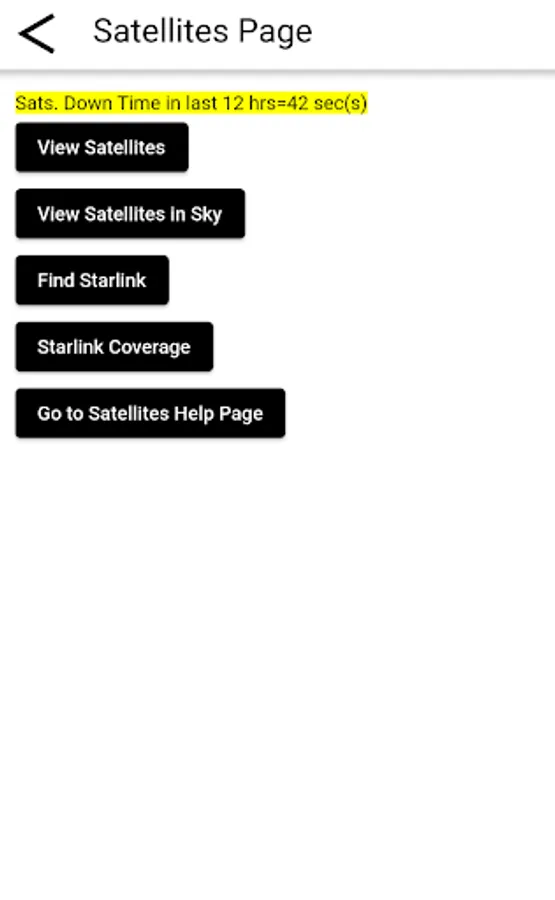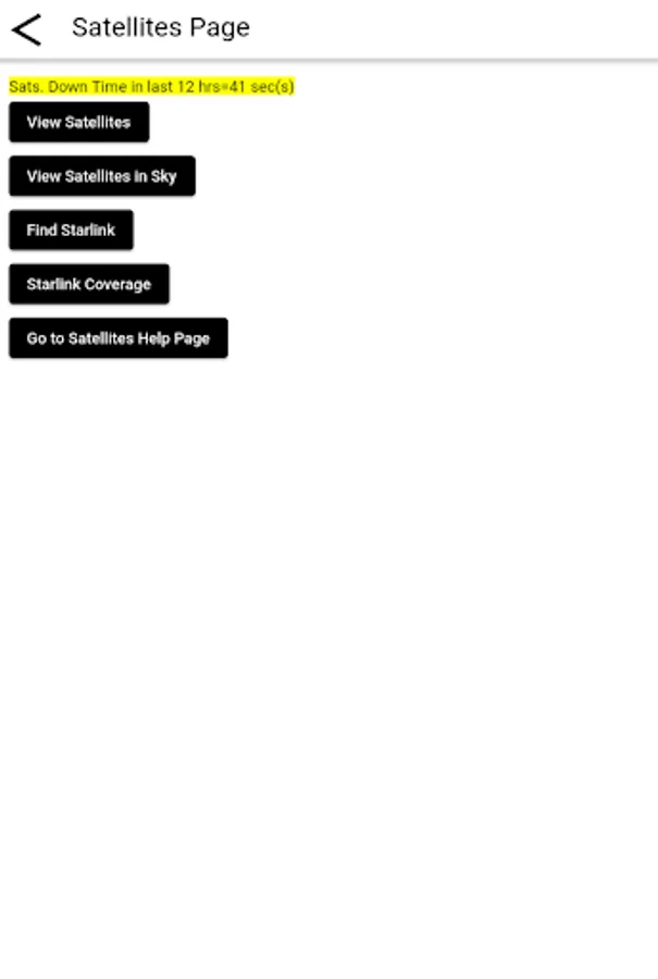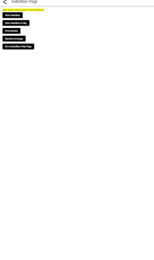 The Satellite page will display “No Satellites” time, view all Satellites in real time(View map), show how & when you can see the satellites in the night sky, and a satellite help section. The Satellite help section describes how to use the View Satellite Map and give you a better understanding when satellite positions will be optimal.