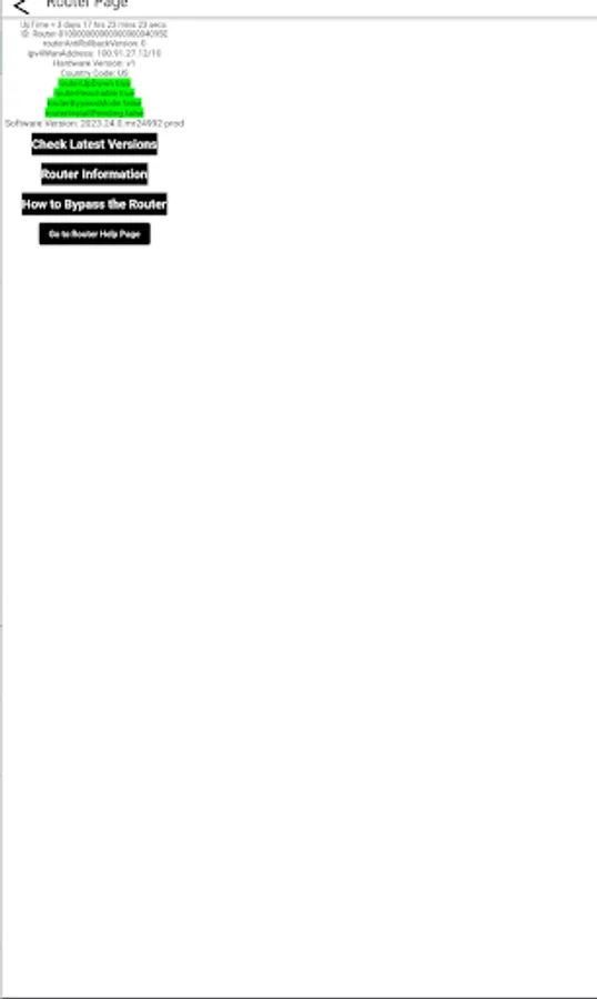 The Router/Wi-Fi page includes a test of the connection between the app and the router, display status of Uptime, and Wi-Fi software & firmware versions. Detailed instructions on how to use your own router are also included.