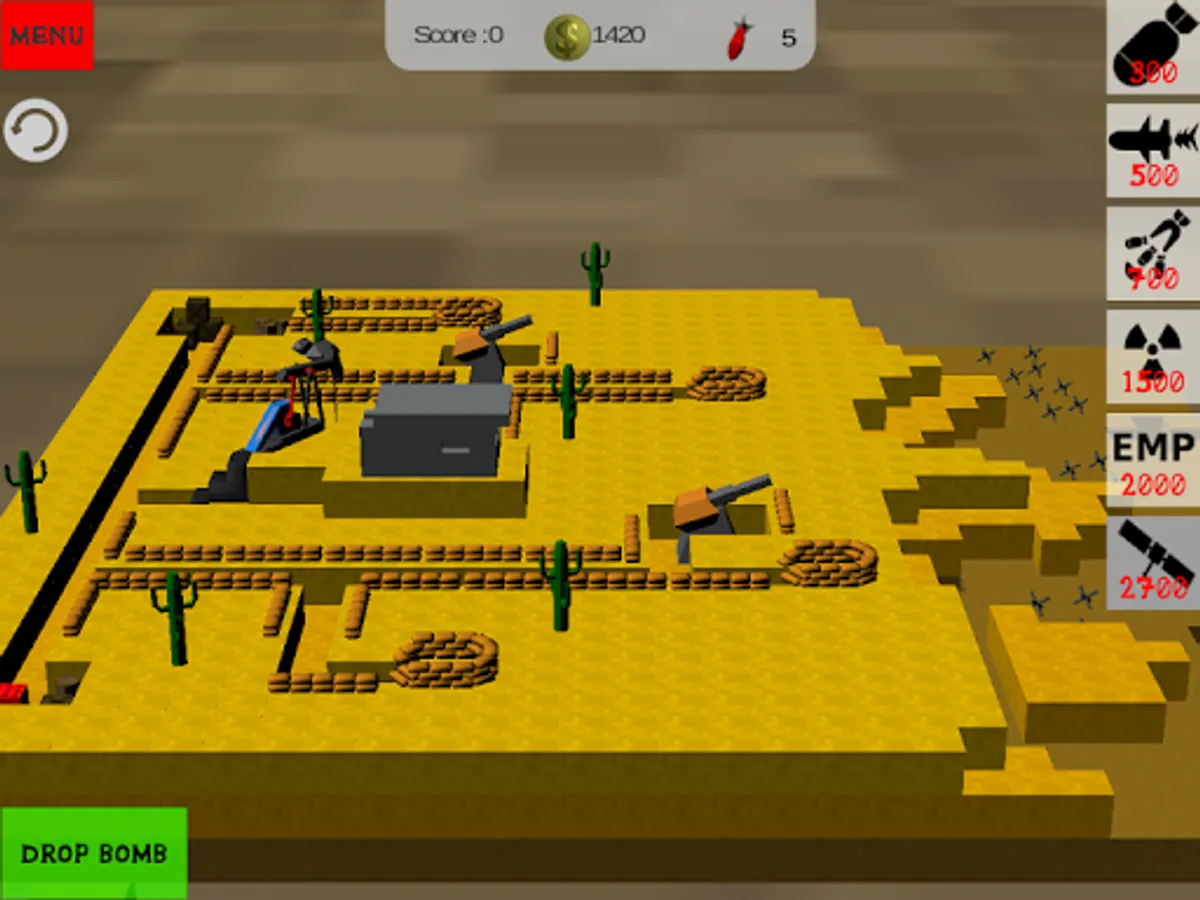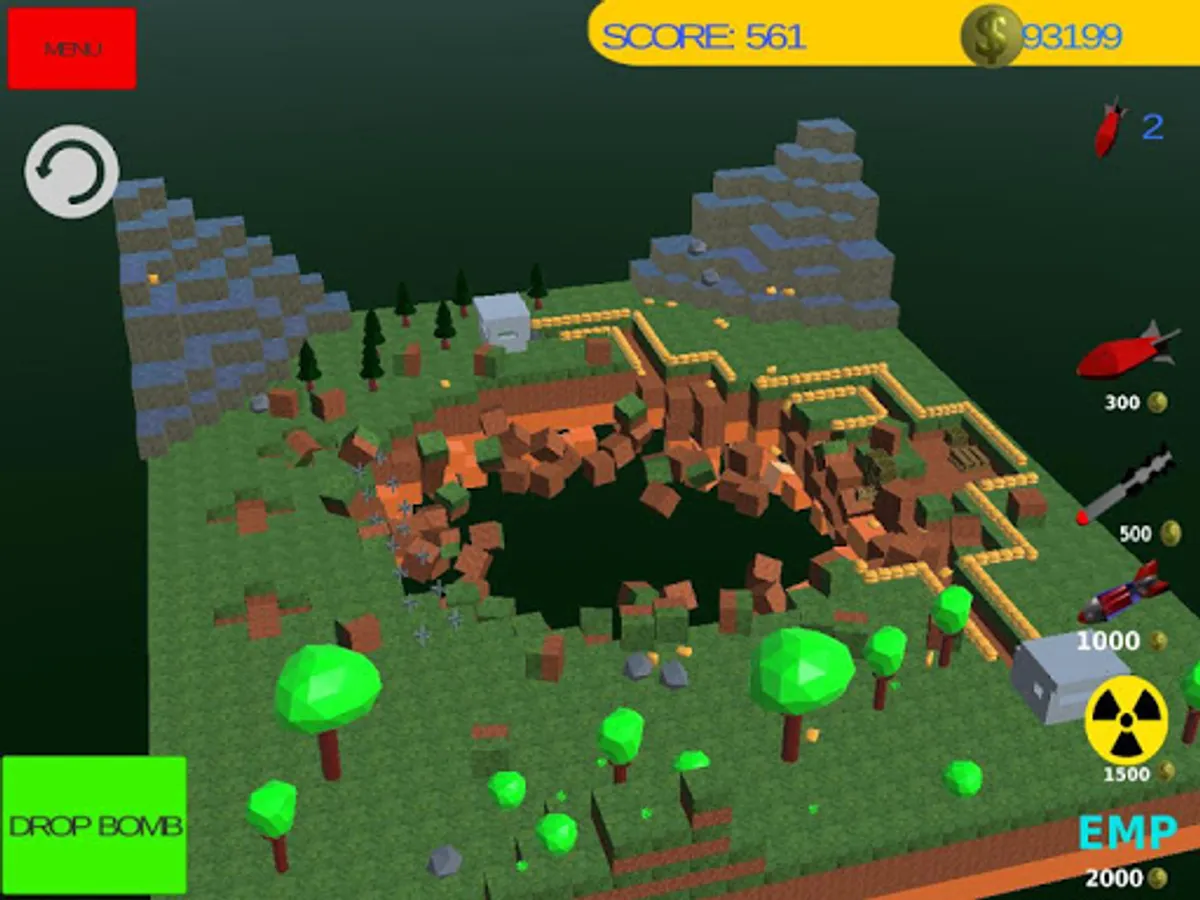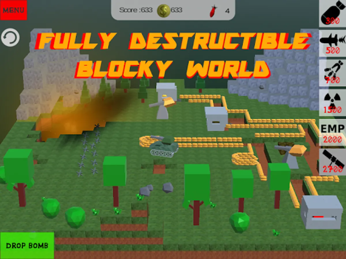 Bored continuous building blocky world ? Take control of powerfull bombs and destroy everything around. In Blocky bomb apocalypse every object on the map, you can destroy it. You will be rewarded for every destroyed object, but that it was not so easy on your way will destroy you the enemy blocky antiaircraft tower defense. Avoid enemy fire may destroy additional targets on the map. Gained funds you can spend to buy new blocky levels , buy new types of bombs and upgrade their blocky bombs to were even more devastating.