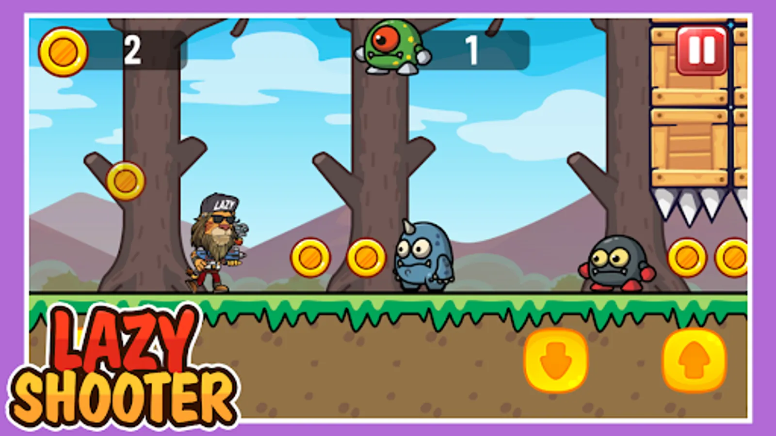 Lazy Shooter - Adventure with the Lazy Shooter, as he explores the forest. Shoot enemies, collect gold and run with the King of the Jungle-- all while challenging for the best score on the leaderboard.