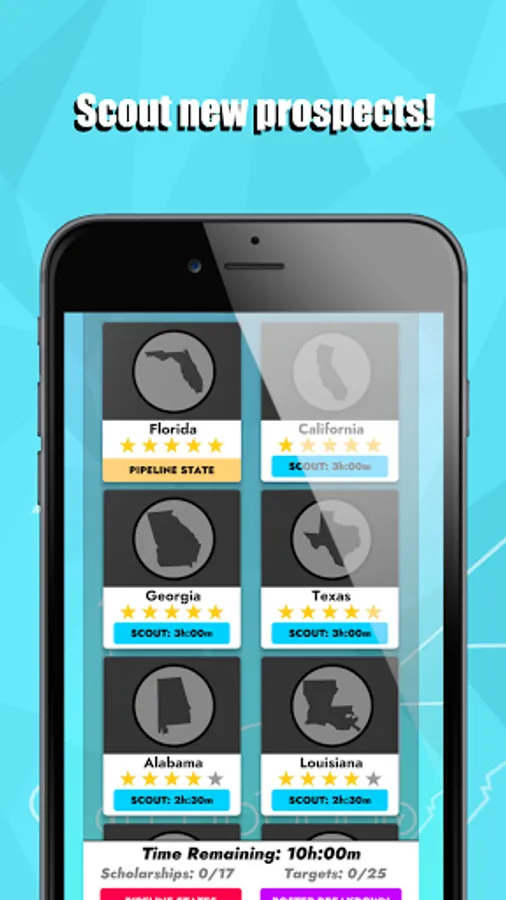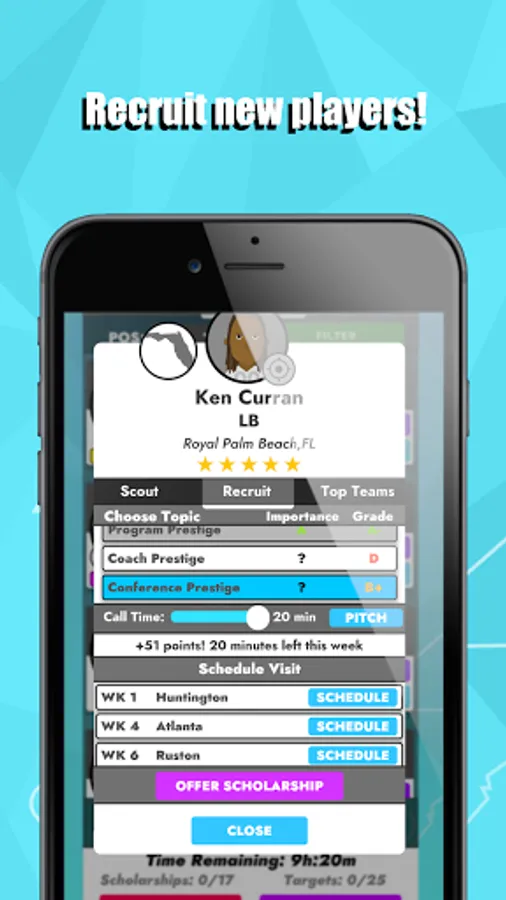 College Football: Dynasty Sim puts you at the helm of a college football team. Do you have what it takes to build your team from the ground up, from a cupcake to a perennial powerhouse? Choose a College Football team, customize your non-conference games, make roster changes, scout, and recruit new players to see if you have what it takes to win Conference Championships, Bowls, or even compete in the playoffs and win the National Championship.