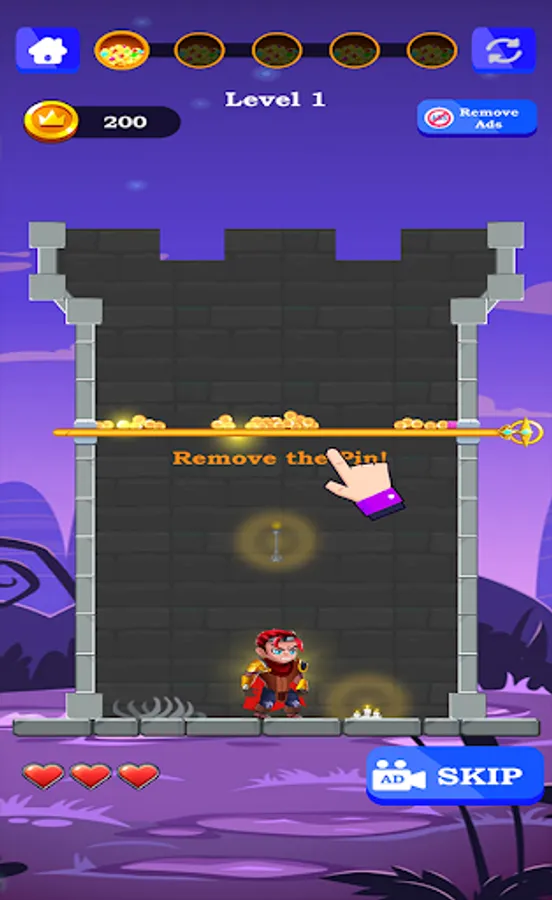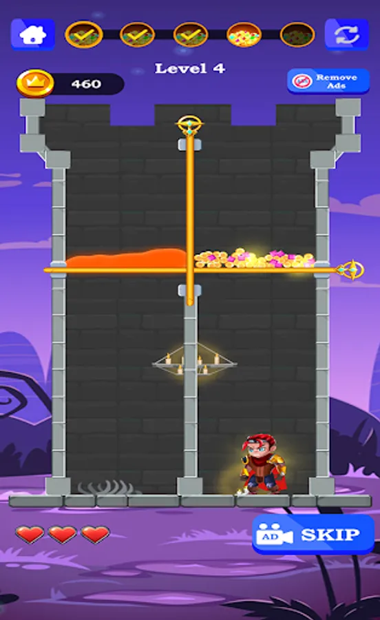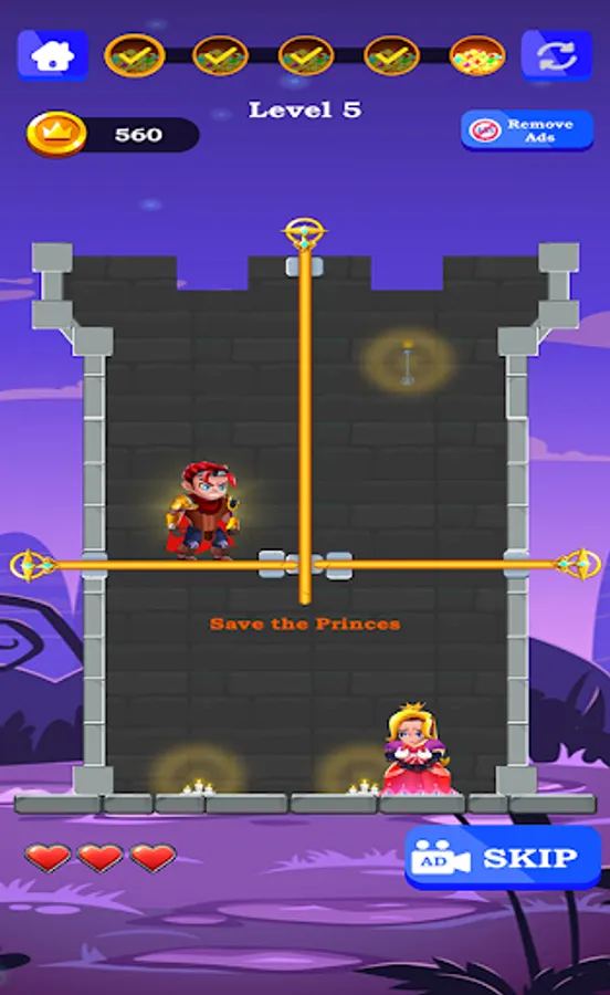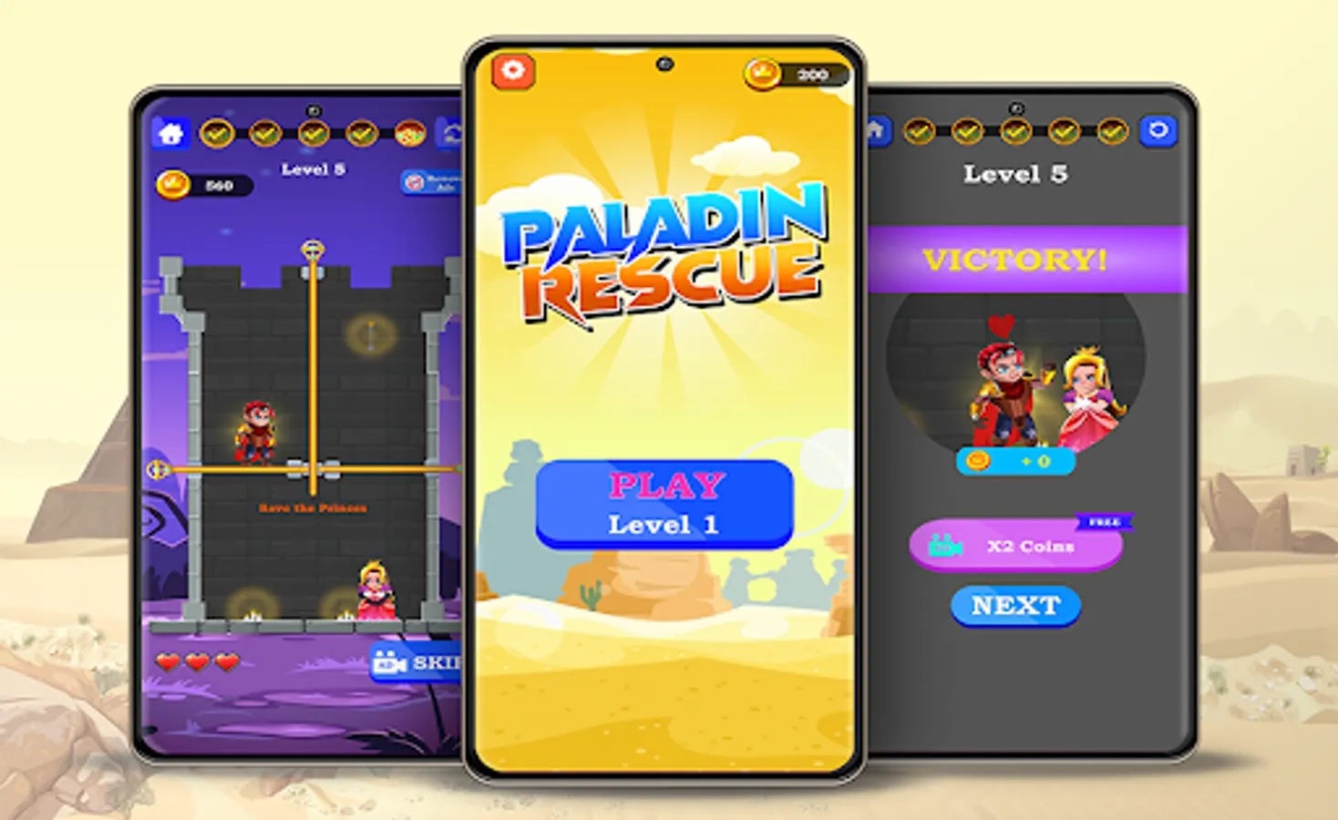 Different levels await you in the Paladin Rescue game. Pull the pins and rescue the Princess from different Monsters and new challenge on each level.