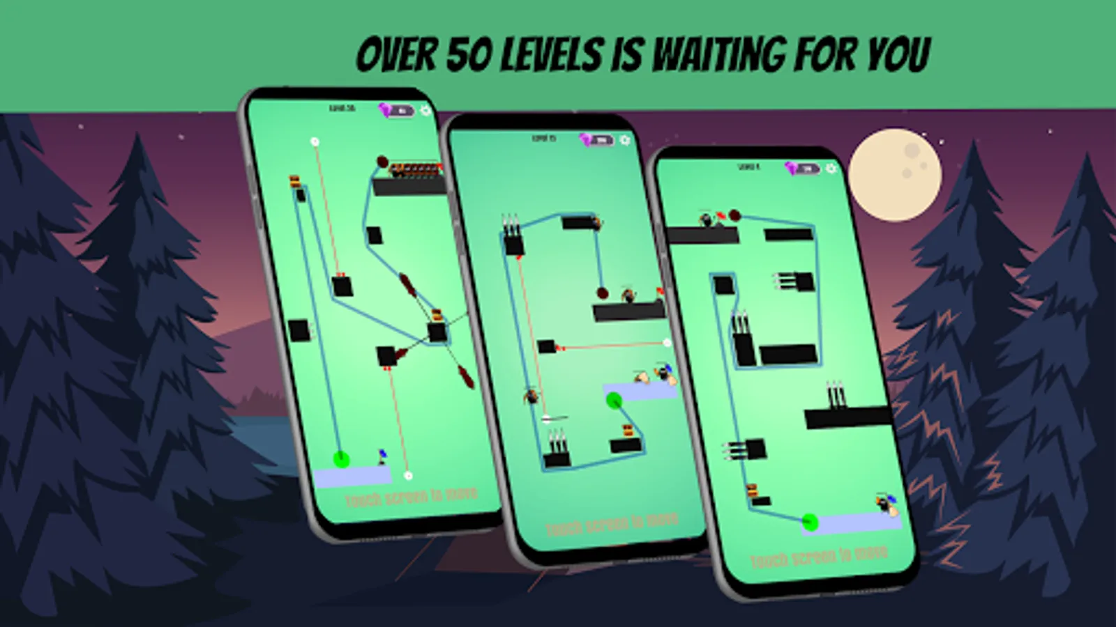 ♦️ At the beginning of the puzzle, you use your finger to move the end of the rope to the destination position. After arriving, you tap the screen to ask the soldier to move according to the rope you have drawn. You can correct the path when no soldiers are moving on the rope.