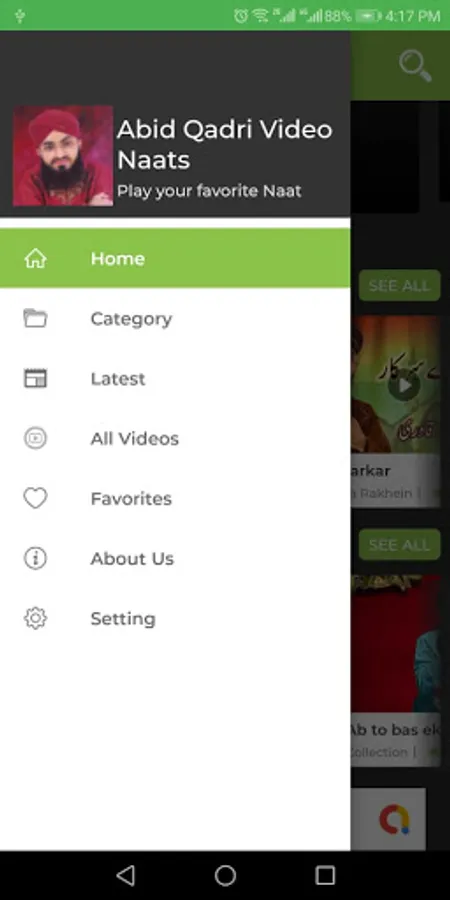 This app contain video naats from this famous naat khwaan