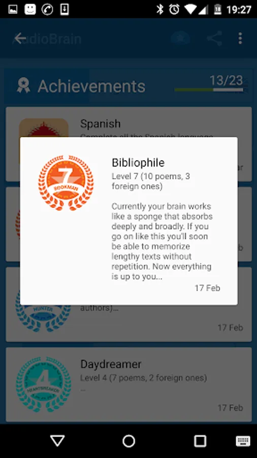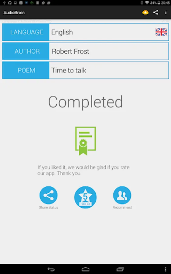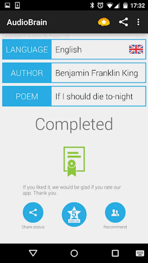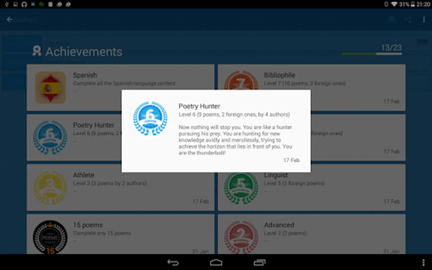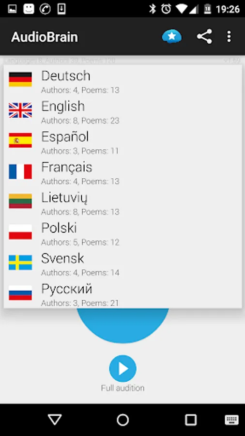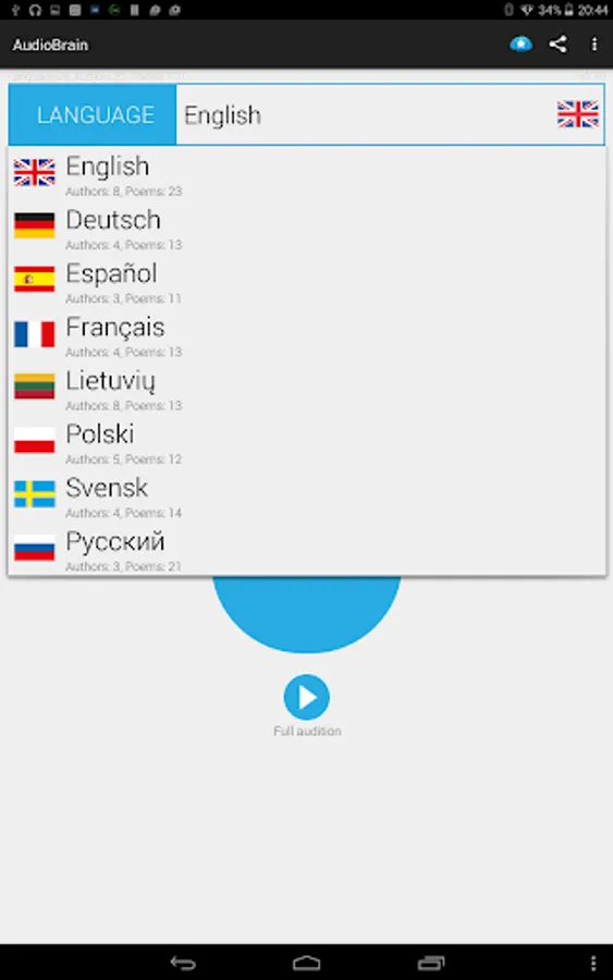 AudioBrain is a uniquely designed memory development technique based on listening to the world's classic poetry by Shakespeare, Pushkin and Cervantes, professionally read by native speakers. Stimulating the underactive brain regions responsible for processing audio data the application takes your perception of any information to a new level.