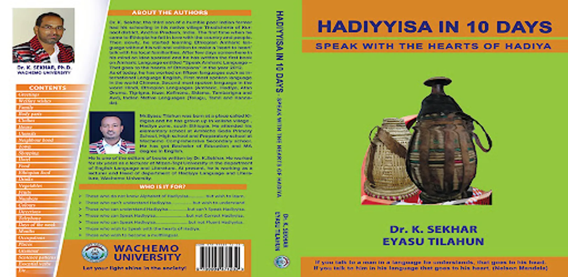 It is not a product of the mill like the other Hadiyyisa learning courses available in the market. It is not based on the translation method that is usually followed in other courses! The assumed sentences between first person and second person in dialogue form are constructed first in English and then they are translated ad-verbatim into Hadiyyisa or any other language. And the learner cannot memorize those parrot words; nor can he/she visualize the same situation repeatedly in day-to day life.