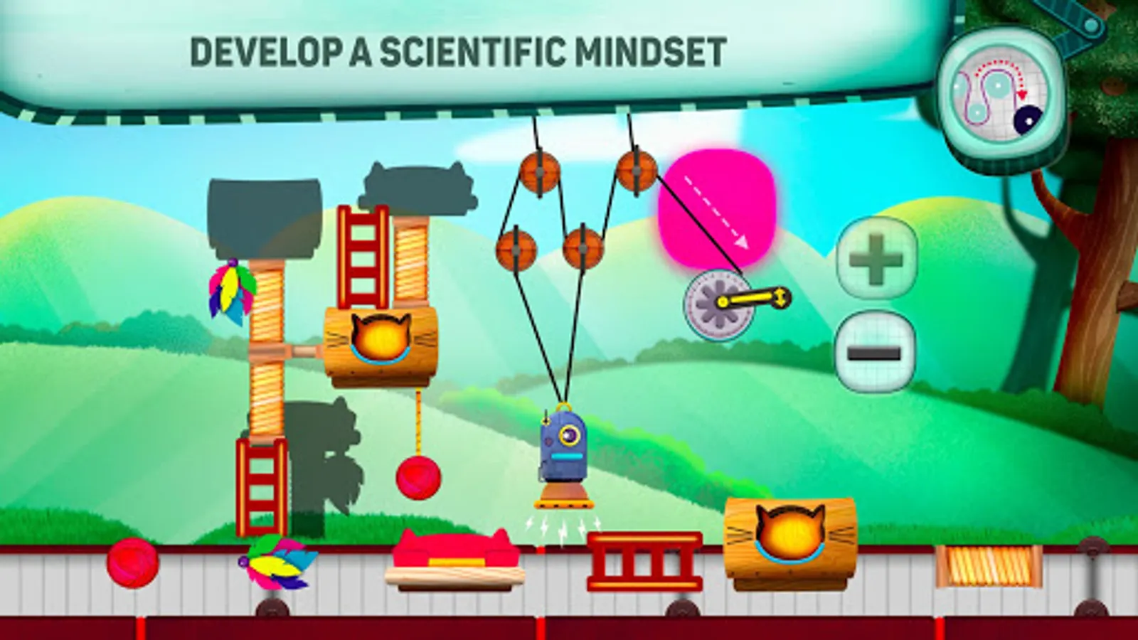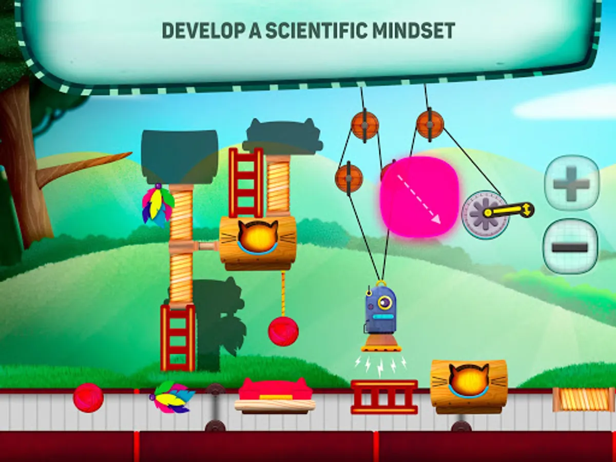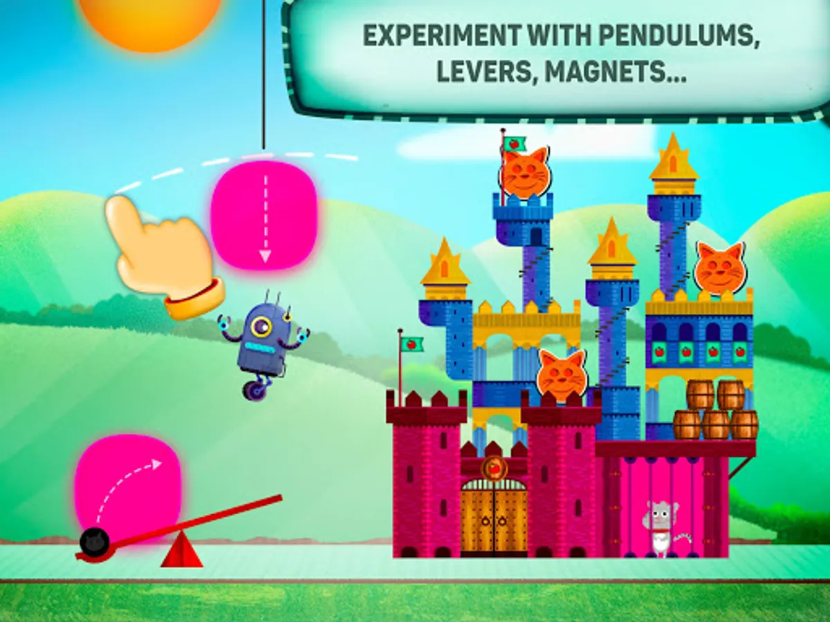 Play and learn as you earn cookies to feed the cat. Develop scientific thinking, logic and curiosity. And have fun with your new friends, the cat and the robot.