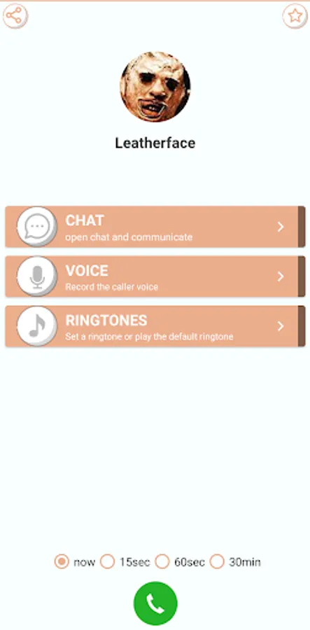 Prank your friend and family with Leatherface Call Prank, show them your scary conversation with Leatherface and how scary you are.