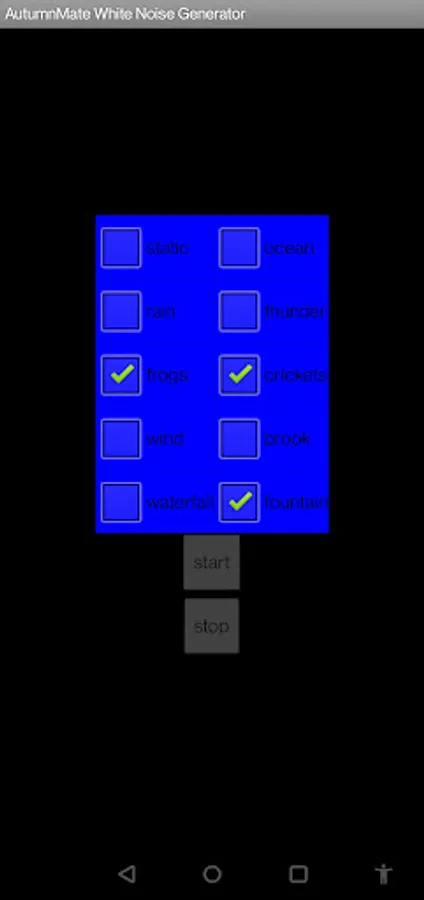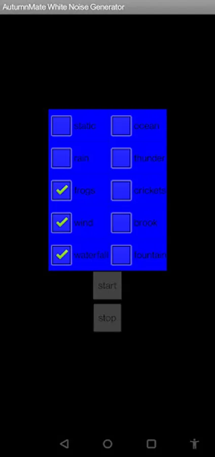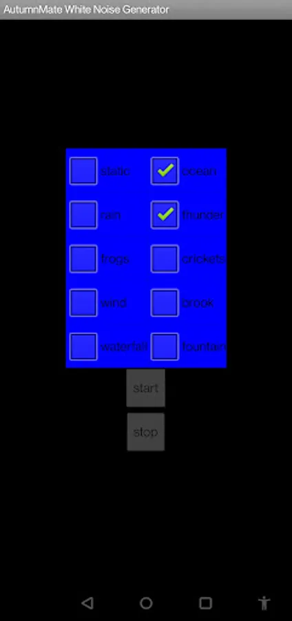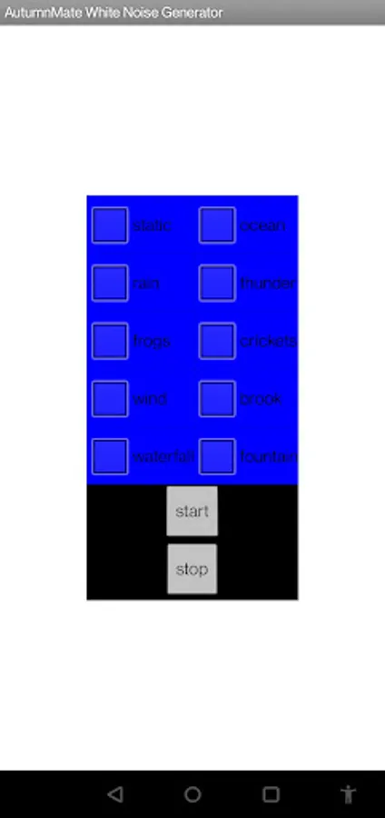 Ad Free White Noise Generator by AutumnMate Enjoy the soothing sounds of the howling wind, crashing thunder, heaving seas and STATIC! Add some frogs and crickets in the mix too If you like that sort of thing. Before using this app, take a moment to consider the level your volume is currently set at. Enjoy!