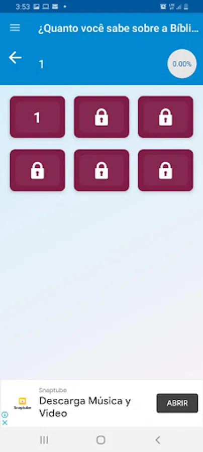 How much do you know about the Bible? It's a Christian game in mobile application only for android type puzzle, where you have several questions with their levels, within each category you'll find six levels where you'll have to answer them and unlock them, showing a percentage, each level is passed with 70%, you can reset the levels if you wish.