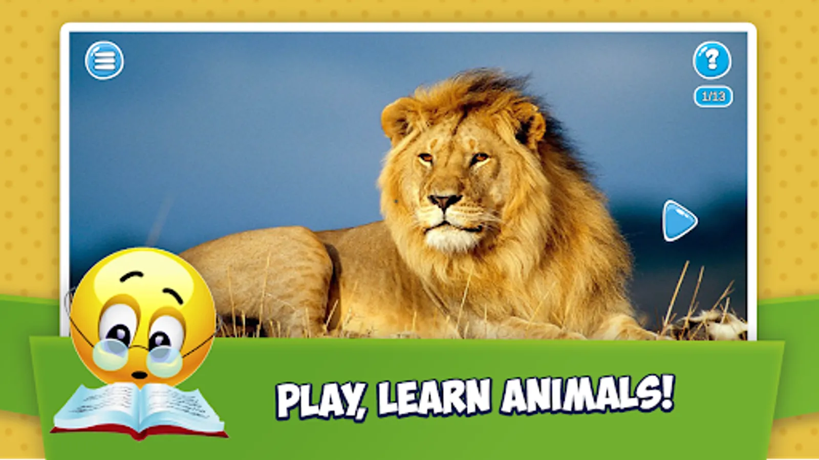 A significant feature of this kids learning game is that full-length beautiful pictures of real animals are used, this way the child learns how they look in real life.