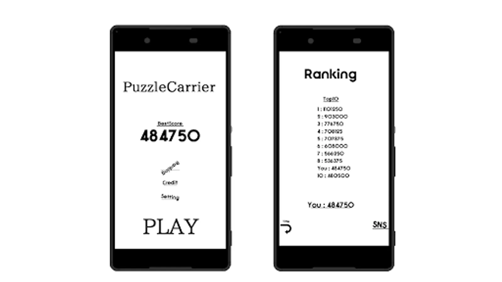 Search #PuzzleCarrier on SNS to see other players' scores!