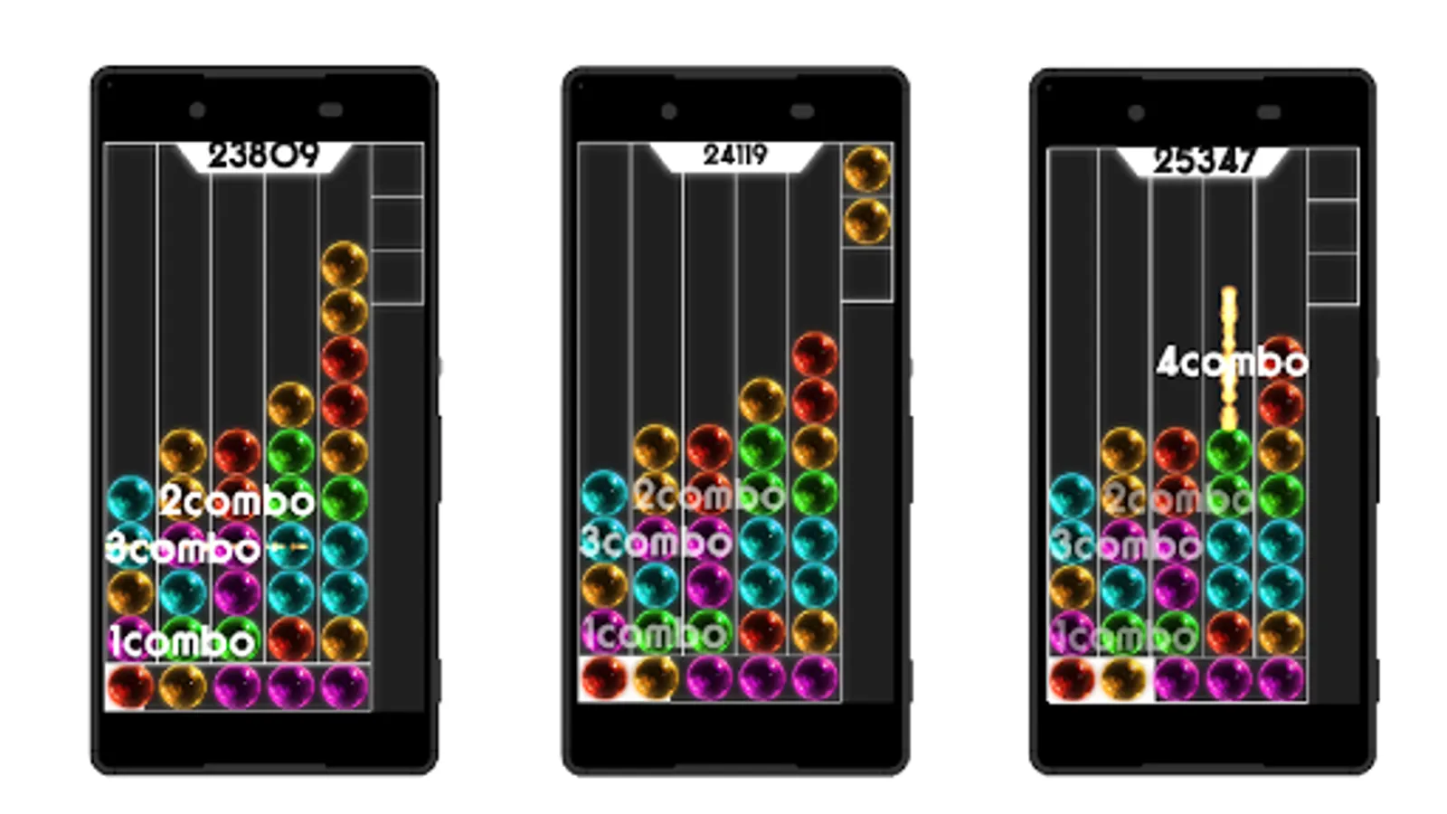 If you erase the ball again within a certain time after erasing it, it will become a combo and your score will increase.