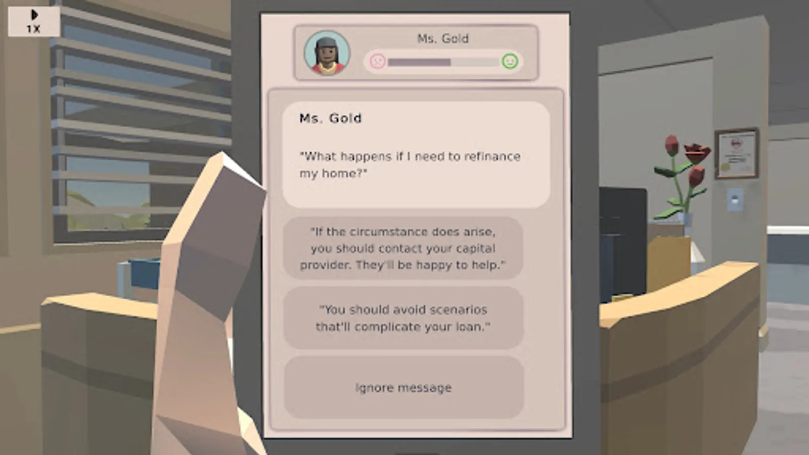 Gameplay will lead you through the office where you'll be able to see your daily appointments, get tips from colleagues, and call, message or head out to visit customers.