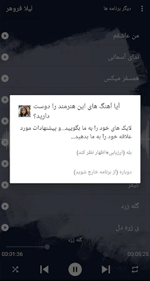 • Laila Forouhar's best songs in one program and without a network. We hope you like it.