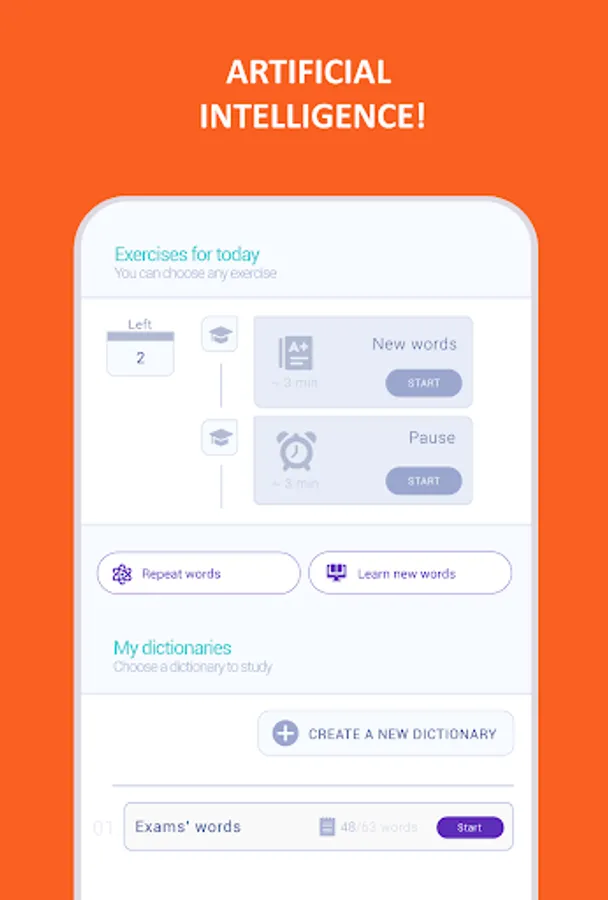 ► Spaced repetition based on the artificial intelligence. This means you can learn Spanish faster.