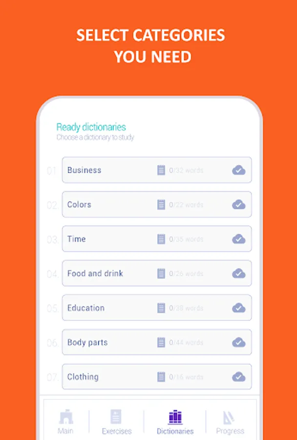 ► Add your own word lists. Do you have your own words that you learn in a language course, university or school? You can add your words to the app from anywhere.