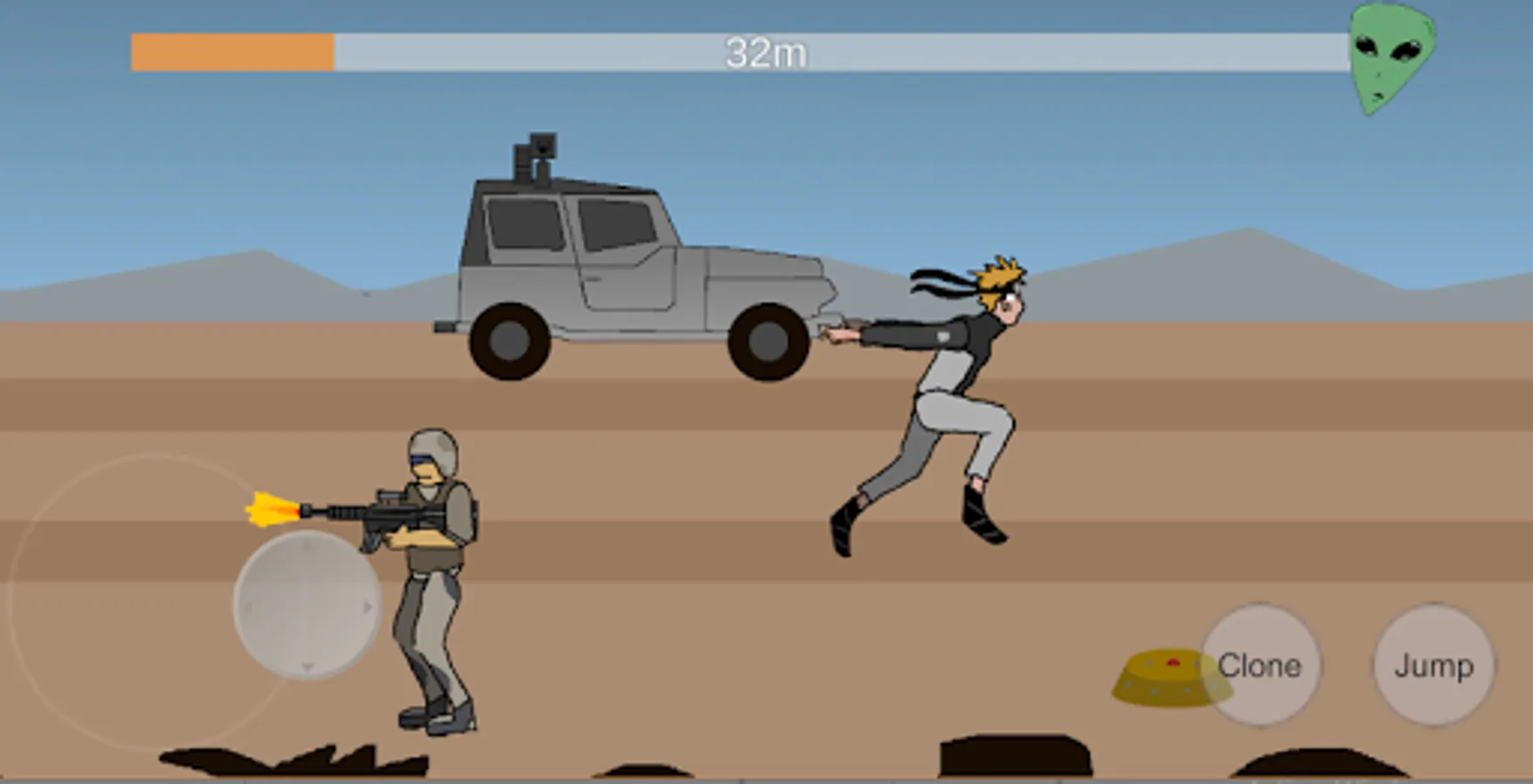 Run, jump and avoid the military army! don't forget to use your ninja ability to clone yourself.