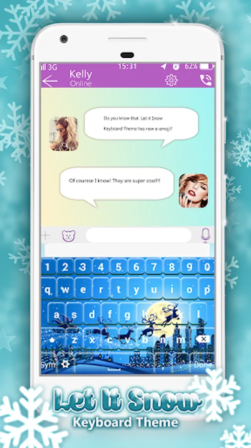 ❄️❄️❄ This winter season is ought to be magical with 🌨 Let It Snow Keyboard Theme 🌨 free app for your mobile phone. No need to wonder if it would snow this Christmas! Download “keyboards with emojis for AndroidTM” and with different snow “keyboard themes” your Christmas will be complete. Cold “winter live wallpaper” will cover your keyboard background with playfull little snowflakes. Relax yourself as you watch them slowly fall down, revealing a beautiful winter theme. It is simply stunning! This fun “custom keyboard” cover came right on time for the holiday season! Download it and use “emoji keyboard” to send Christmas wishes to your loved ones. Let go of your worries and enjoy this winter to the fullest! ❄