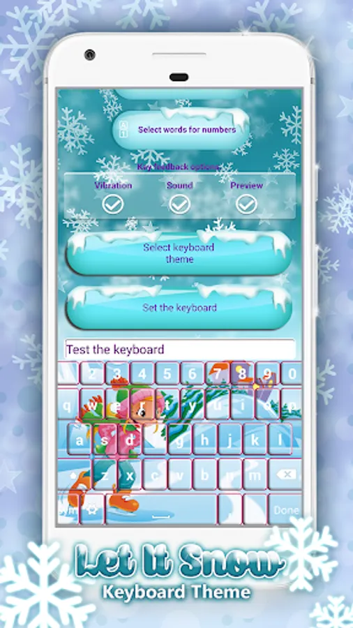 Return to the application, select ‘Set the Keyboard to Default’ button and select 🌨 Let It Snow Keyboard Theme 🌨