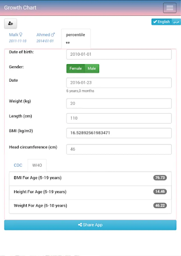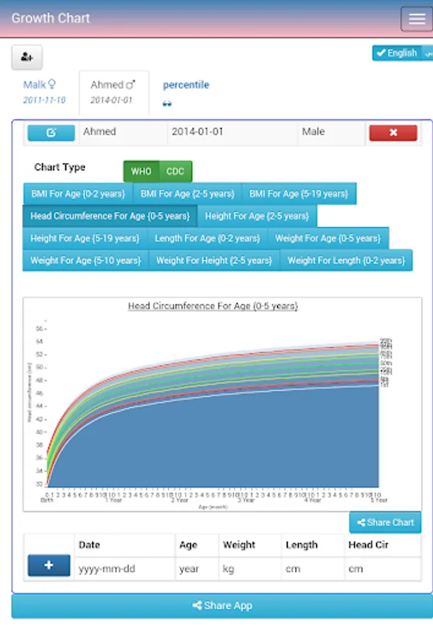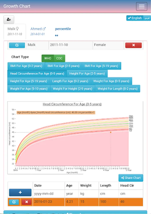 3- Sharing Charts, After Viewing the Growth Chart, you can share it via e-mail, social media,etc.