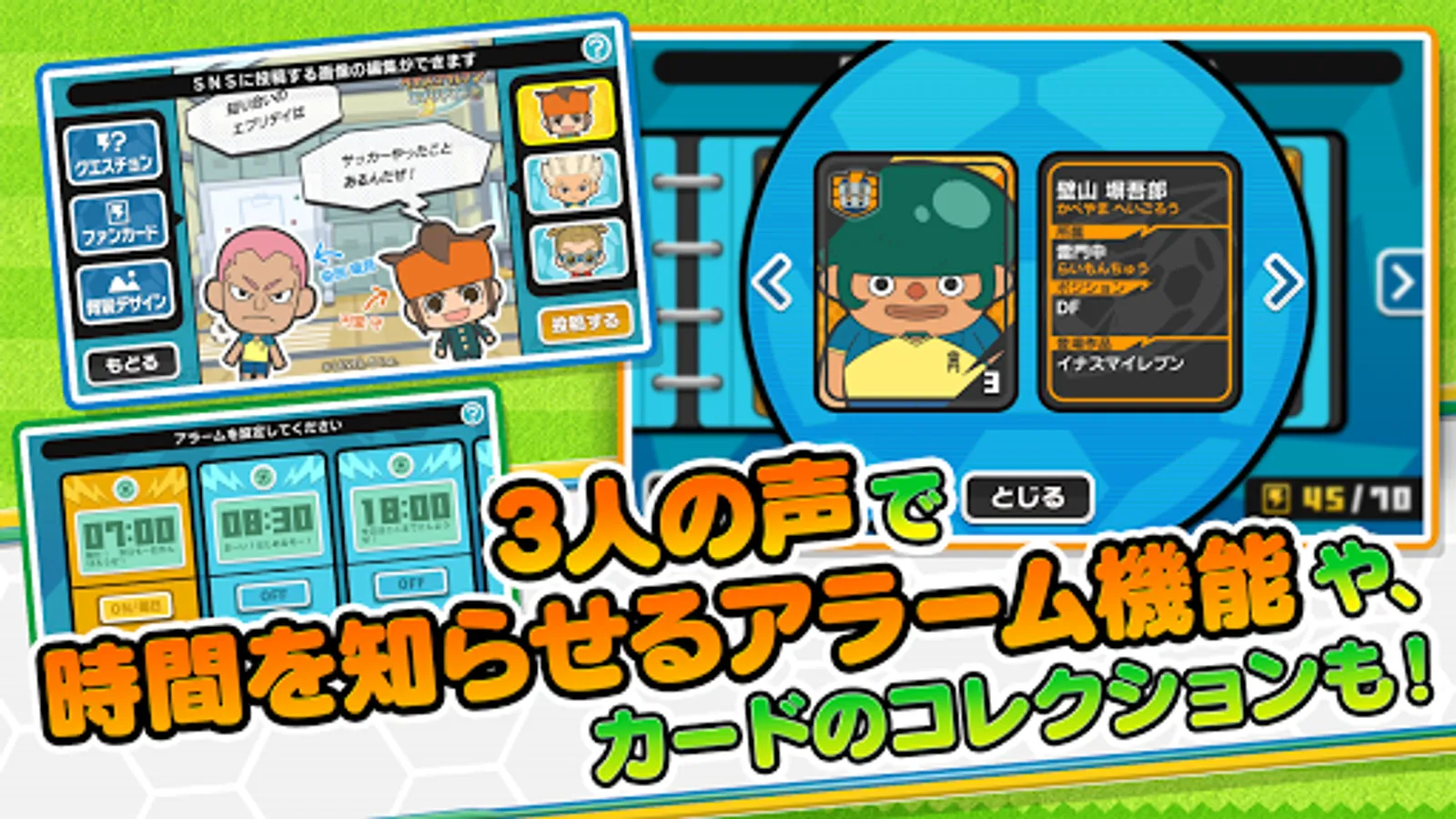 キャラクターの声で、時間をお知らせしてくれるアラーム機能や、