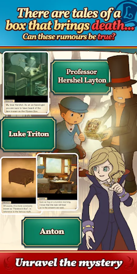 Featuring a distinctive artistic style that brings the old-world charm of the Layton Series to life, this delightful adventure will have you travelling into the unknown alongside Professor Layton and Luke. Look out for familiar faces, but don't be surprised if you encounter new blood, too.