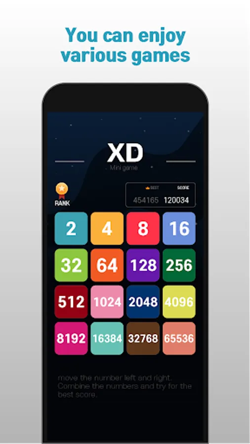 타일을 미세요! 같은 번호를 가진 두개의 타일이 닿으면, 하나로 합쳐져요!
