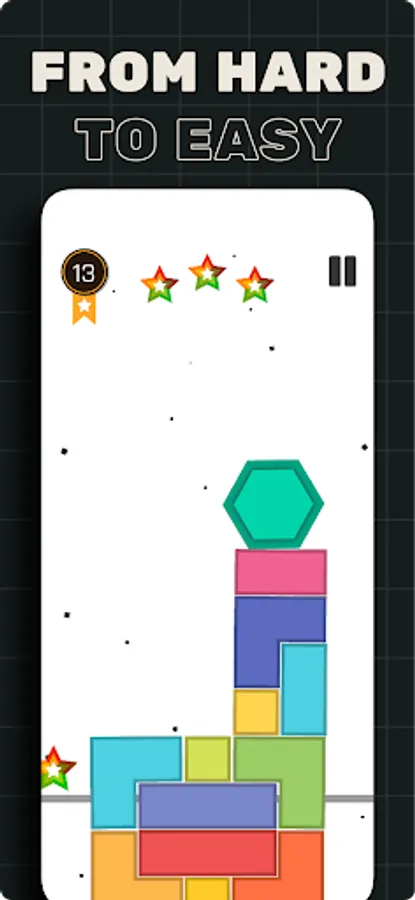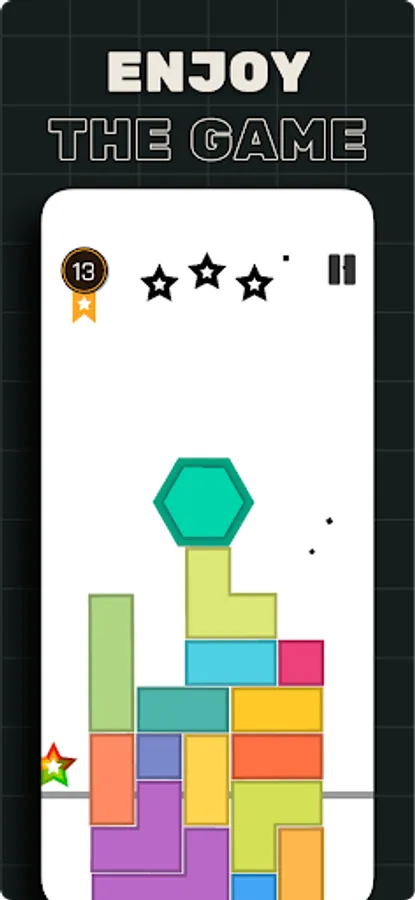 Complete the level of colored blocks and try to score in free mode and get different hexagons in the store