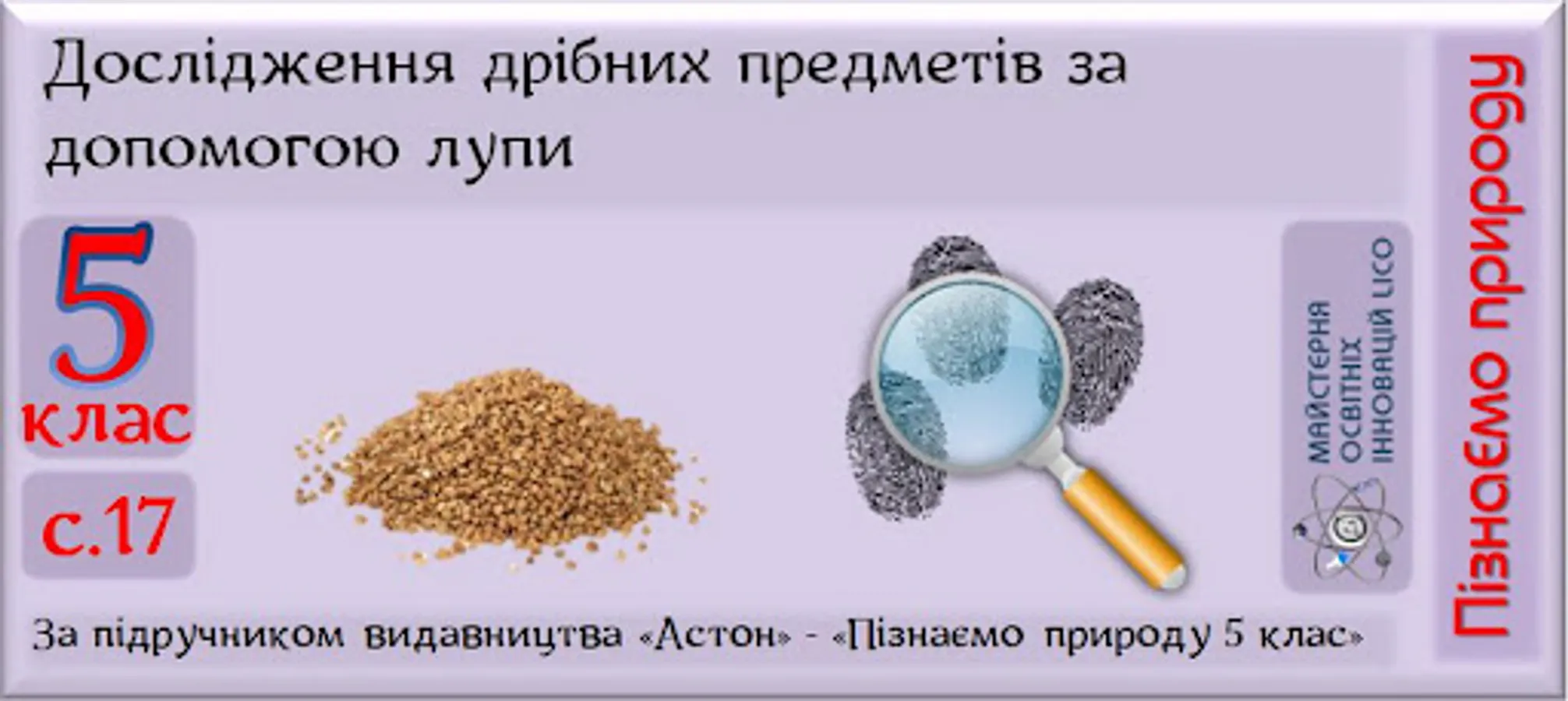 The video materials contain sequential video instructions for performing practical work and home experiments and correspond to the model curriculum of the integrated course "Learning about nature" (authors: D. Bida, T. Hilberg, Ya. Kolisnyk). Visualization and video support of educational material facilitates its assimilation.