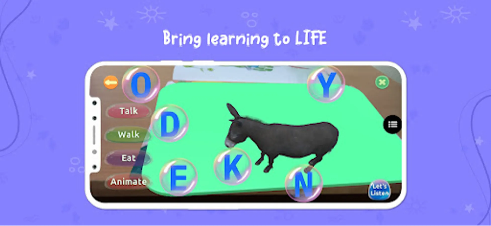i-Life is a fun and engaging Augmented Reality app that makes learning alphabets, phonics, numbers, stories, rhymes and science topics easy and lets you interact with objects, animals and landscapes in the palm of your hand using Augmented Reality.
