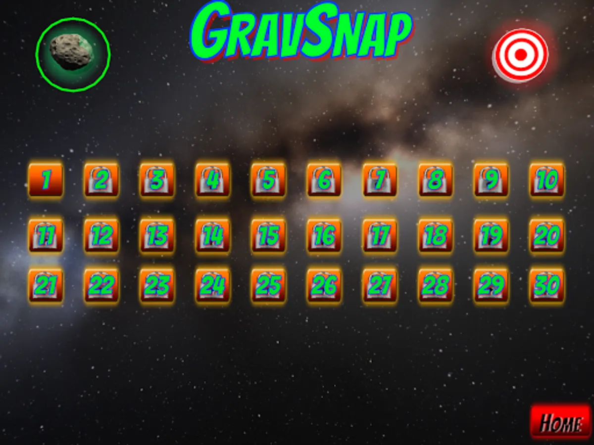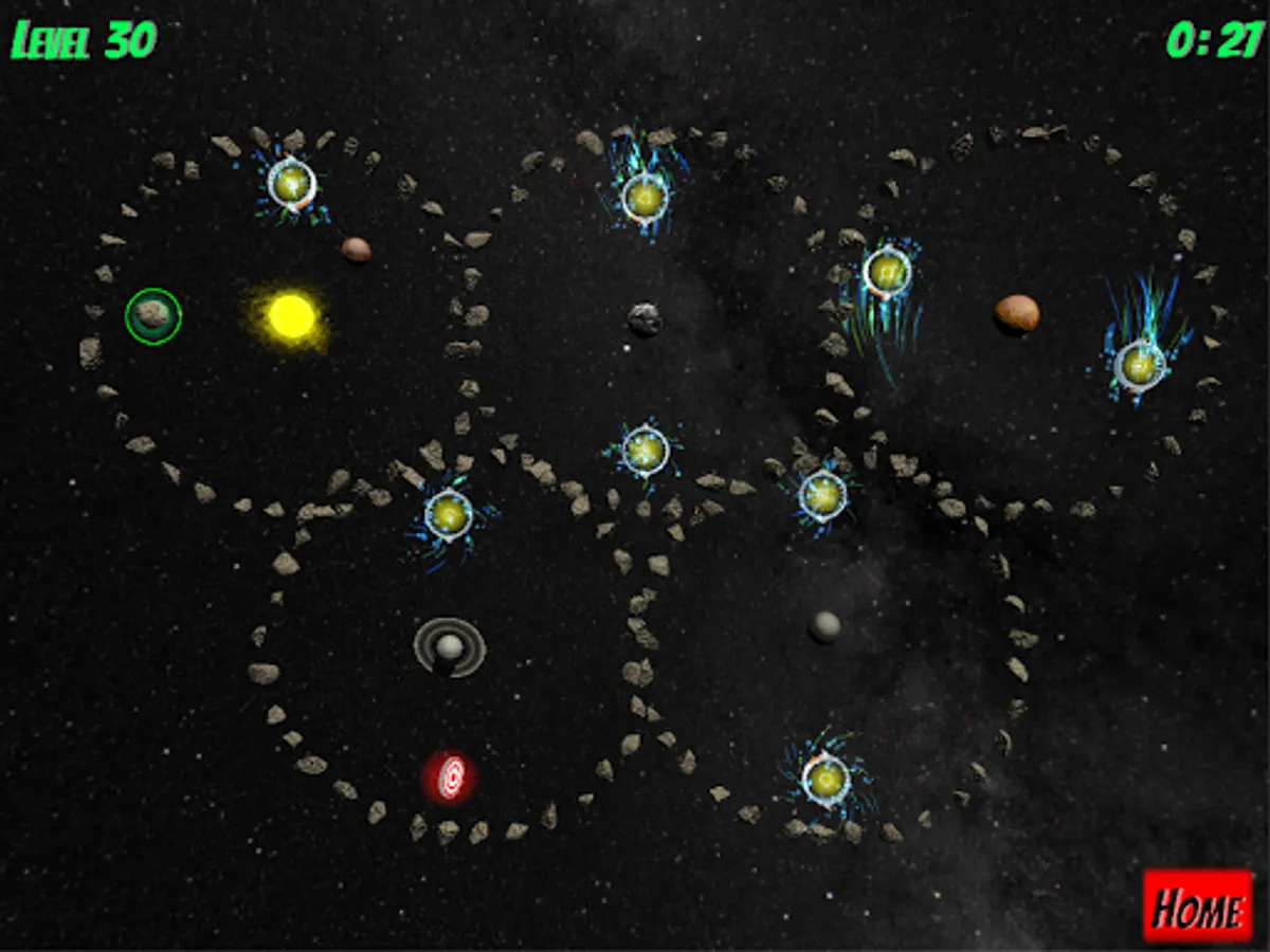 30 Levels of gravity puzzle fun with increasing difficulty and new game elements along the way for your asteroid to navigate!