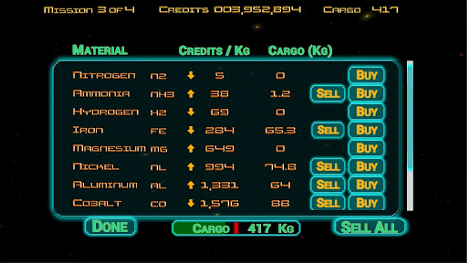 Sell your ore wisely Miner, the economy of space material is variable and prices can change drastically from one mission to another. OMCs research experiments, global ore supply, and new discoveries can send prices plummeting or sky rocketing, mine low and sell high!