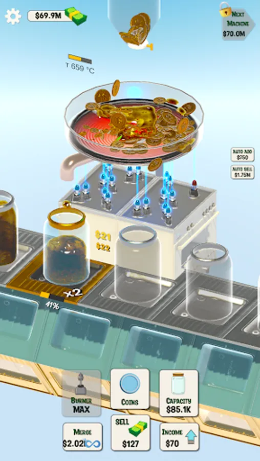 Melt plastic balls, metal coins, and other different stuff! Try to fill as much bottles as you can to make higher in-game profit! Use it wisely to be able to efficiently upgrade your melting machine and bottles! Then you can melt faster and more to produce higher profit, which you need to complete level and find more substances to melt!
